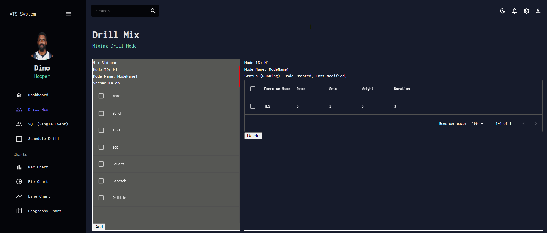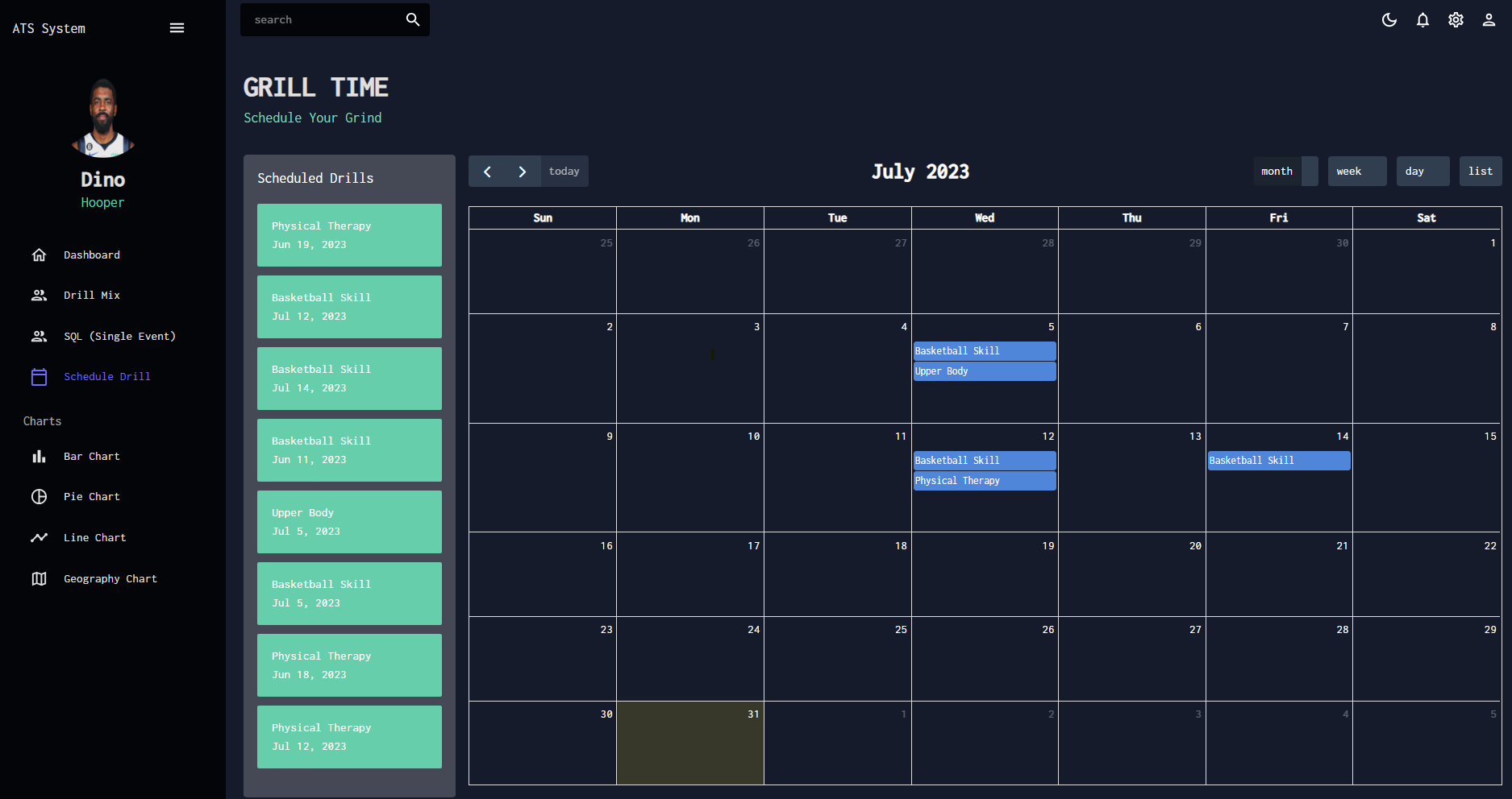 A React application features athletic training schedule management, motion data recording, and visualization.